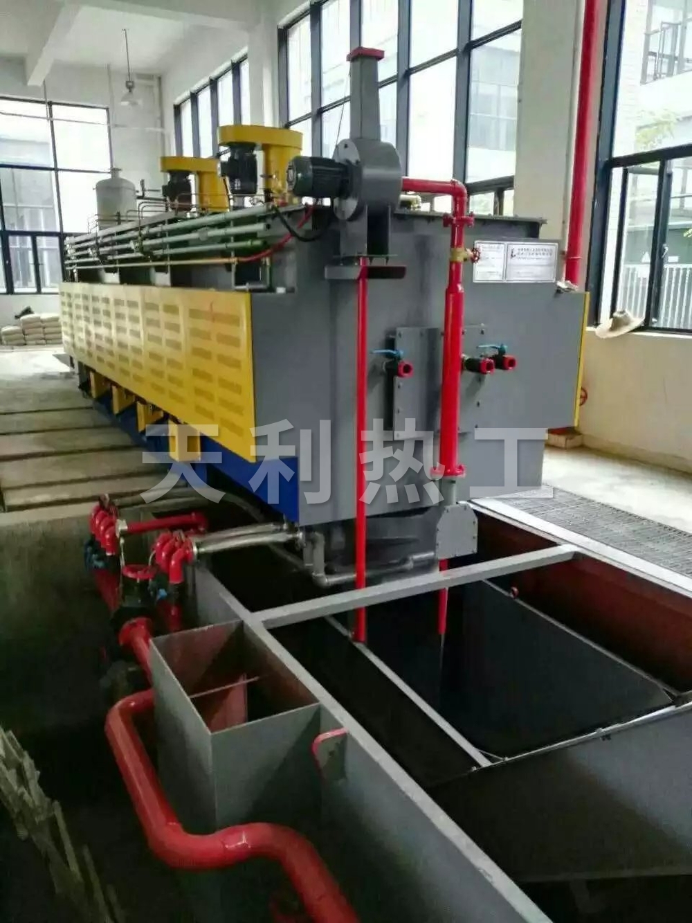 淬火池是淬火的場(chǎng)所,就是一個(gè)池子,里面有水溶液或者是油,就是箱式爐出來的工件淬火的冷卻的地方,一般就是直接丟進(jìn)去,然后等一段時(shí)間撈出來。還有其他的一些設(shè)備,比如高頻機(jī),就是一個(gè)可以將 50 赫茲的工頻電變成一個(gè)200K 赫茲電流的超大功率的設(shè)備,比如常見的有 200 千瓦的***大功率,然后用一個(gè)內(nèi)部通冷卻水的銅管做的線圈放在工件的外面,一般幾十毫米的工件,幾秒種到十幾秒的時(shí)候你就看到工 件表面變紅,表面溫度到預(yù)定值的時(shí)候,然后有一個(gè)水套升上來噴淬火液到工件 表面,完成淬火過程。常見的就這些了。