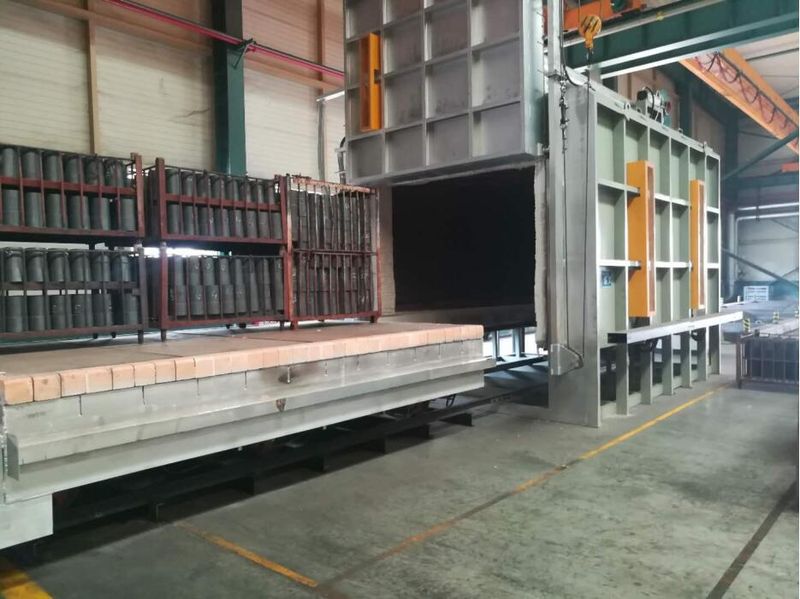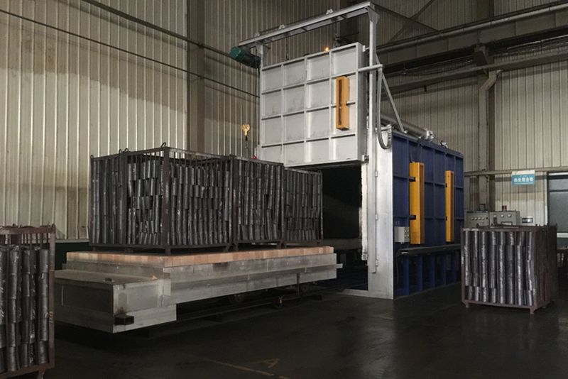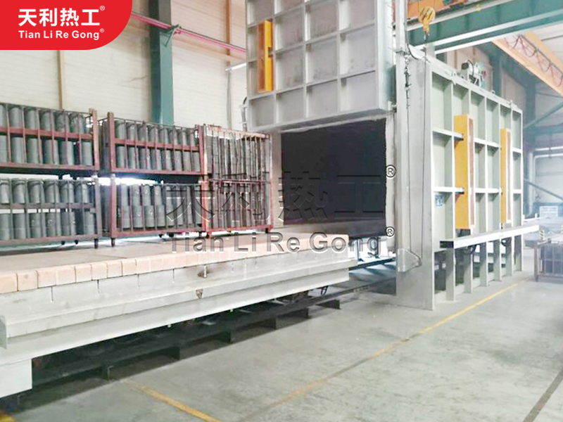 臺車式電阻爐由爐體,爐襯,爐門及爐門升降機構,加熱元件,臺車及臺車傳動機構,密封機構,電氣控制系統組成。